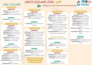Cette carte scolaire ne permettra donc pas d’alléger globalement les effectifs par classe, de reconstituer des RASED complets pour intervenir au plus près des élèves en difficulté, d’assurer l’inclusion de tous les élèves pouvant en bénéficier, de permettre la formation de toutes et tous, y compris sur temps de travail.